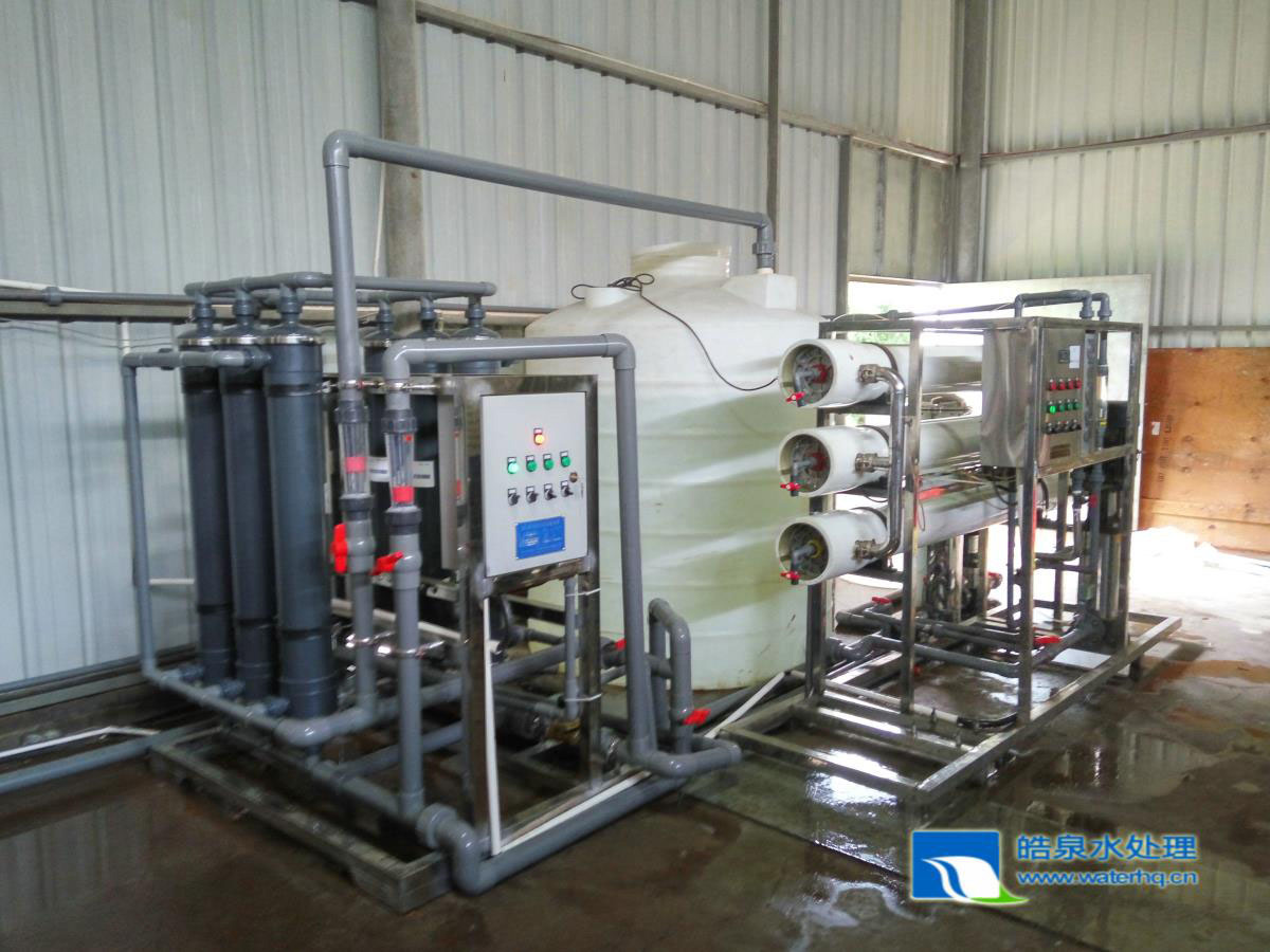 超濾凈水設(shè)備+反滲透純水設(shè)備,云南皓泉水處理設(shè)備公司根據(jù)昆明方德波爾格玫瑰花卉公司用水技術(shù)要求,設(shè)計(jì)改造一套超濾凈水設(shè)備+反滲透純水設(shè)備,設(shè)備安裝調(diào)試合格,完全達(dá)到用戶用水要求。昆明方德波爾格玫瑰花卉有限公司成立于2007年4月13日,位于美麗的云南昆明。目前建成自動(dòng)化溫室及冷庫20多萬平方米。溫室自控系統(tǒng)引進(jìn)荷蘭普瑞瓦(PRVIA)公司的整套設(shè)備。可以實(shí)現(xiàn)對(duì)溫室灌溉,加溫系統(tǒng),肥水回收、消毒循環(huán)利用,溫室氣候系統(tǒng)進(jìn)行精確控制。公司目前玫瑰鮮切花年產(chǎn)量3000萬枝、紅掌鮮切花年產(chǎn)量320萬枝、郁金香鮮切花年產(chǎn)量180萬枝、紅掌盆花年產(chǎn)量60萬盆,菊花年產(chǎn)量15萬盆,長壽花年產(chǎn)量25萬盆,白掌年產(chǎn)量23萬盆,朱頂紅鮮切花年產(chǎn)量25萬枝。大花蕙蘭、繡球花等新品種花材的產(chǎn)量也在不斷增長。產(chǎn)品出口:日本,澳大利亞,俄羅斯,泰國,馬來西亞等國家及香港特區(qū)。為了滿足栽培用水要求,經(jīng)與用戶協(xié)商溝通了解用進(jìn)水水質(zhì)及用水水質(zhì)要求,設(shè)計(jì)了兩套6T/H反滲透設(shè)備,該系統(tǒng)采用工藝流程為: